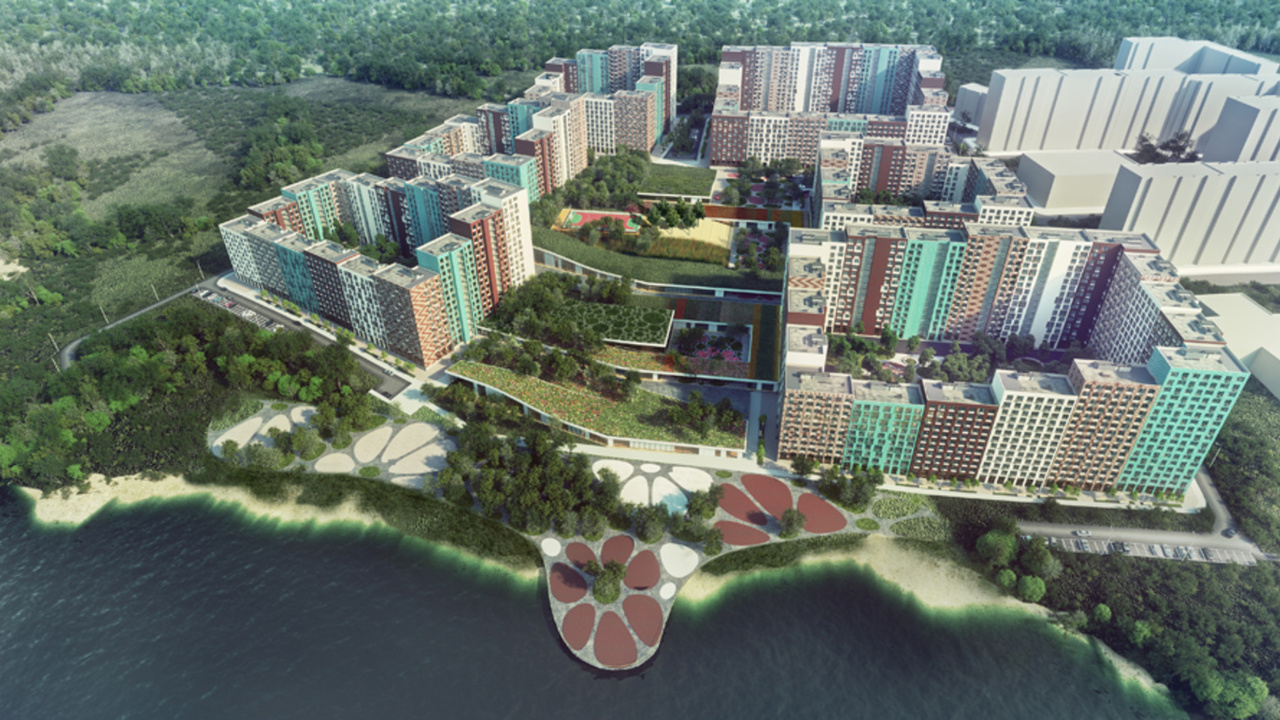 Во дворах будут оборудованы детские игровые и спортивные площадки. Также в микрорайоне будет построено три детсада на 510 мест и общеобразовательная школа, вмещающая 1100 учеников.